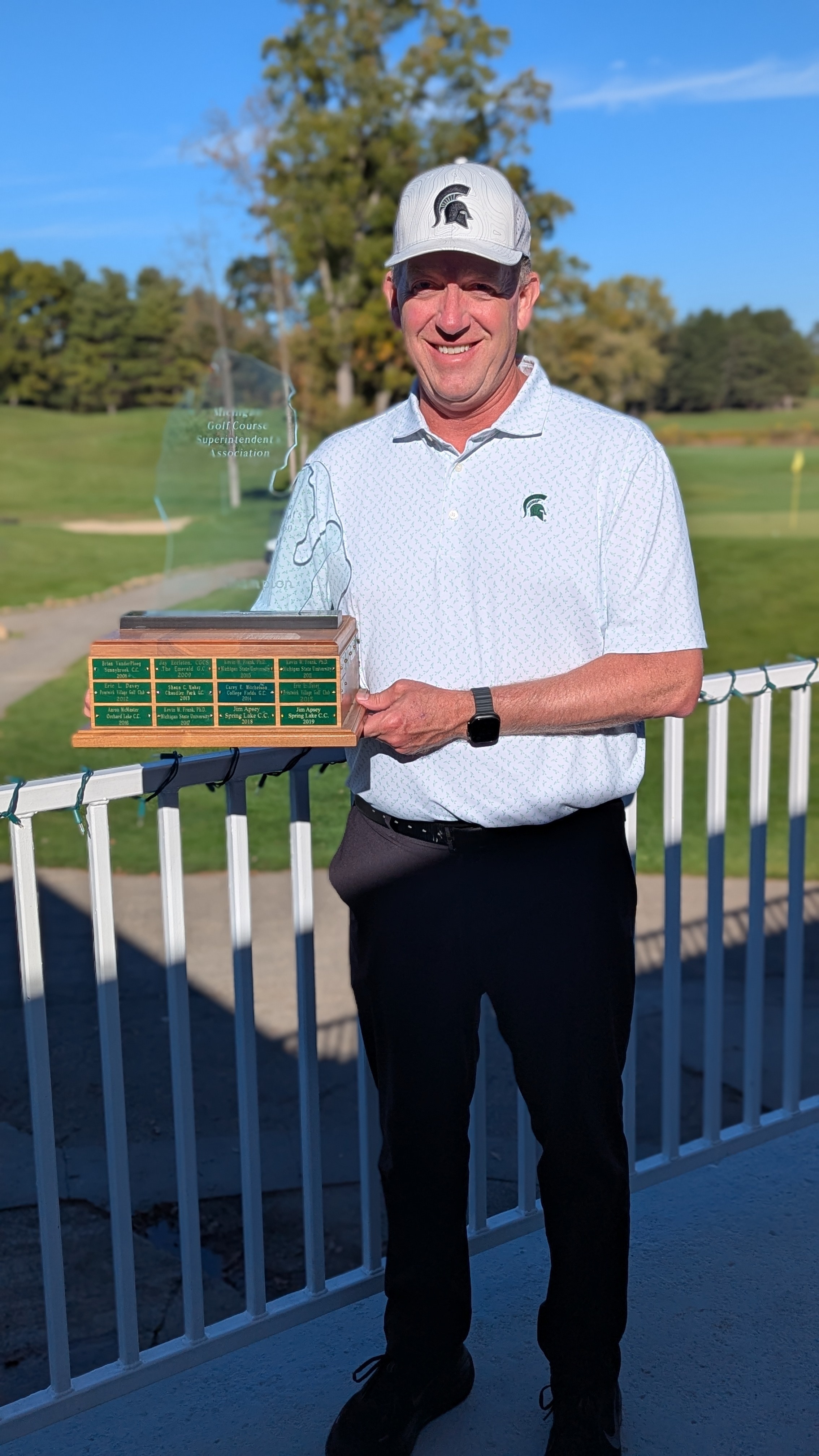 A slightly frosty morning gave way to a perfect "bluebird" fall day in Mid-Michigan. Mike Gianopoulos, CGCS (Kent C.C.), our two-time State Champion and GCSAA National Champion, was in the field, seeking a record-tying third consecutive title.