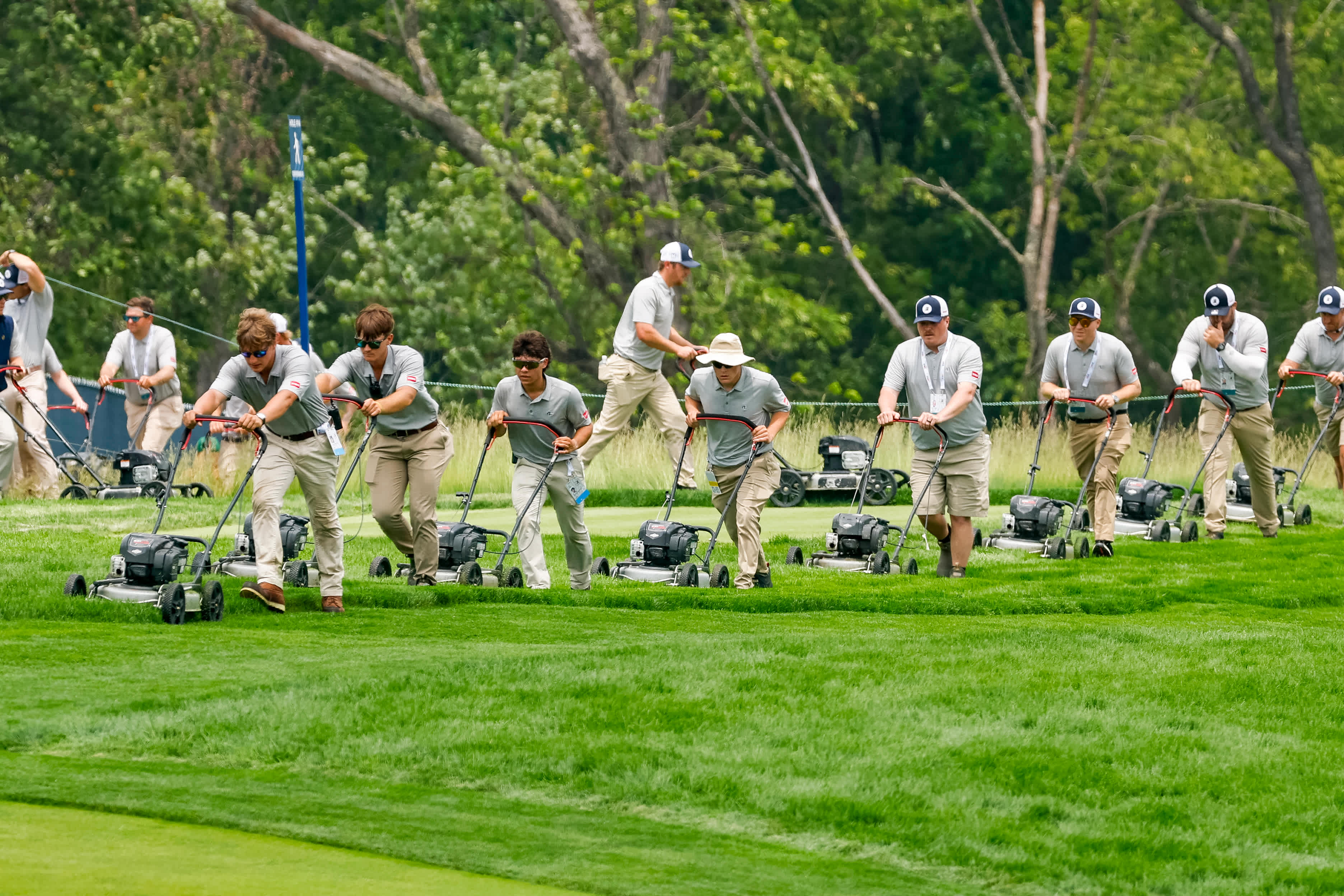 In this case, there were some important reasons why a team of staff and volunteers lined up to push mow everything inside the ropes prior to the championship: