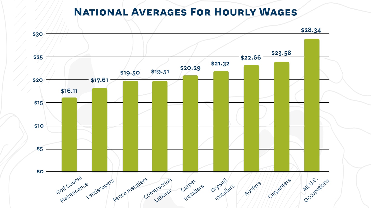 Golf courses are relatively competitive with each other when it comes to hourly wages, but compared to industries that require a similar skillset, golf courses offer several dollars less per hour on average. Without a doubt, wage offerings are weighed heavily when potential candidates are determining whether to apply. Of course, there are certain benefits that golf courses can provide – like complimentary golf and a beautiful place to work – that the roofing and landscape industries cannot, but at the end of the day, money talks.